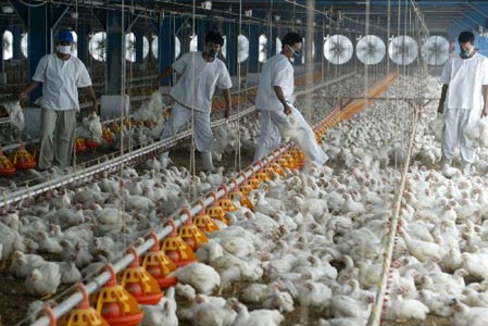 在高溫幹燥的天氣,當溫度在32-35℃,可用高壓水槍向雞舍的進風口,導流板、屋頂直接噴水,可使舍溫降低2-3℃;當溫度在35℃以上時,就要往雞體噴水,主要是頭部,以緩解高溫對雞體造成的傷害。但在悶熱的天氣,溫度過高,而濕度也較大(60%以上)時,噴水降溫就失去效果,不僅不能降溫,還會使雞體散熱更加困難,產生反作用。