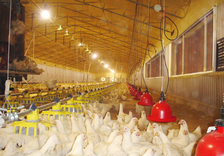 濕簾或循環簾。雞舍長度較長時,兩側牆上安裝進風小窗,以供安裝風機通風用。
