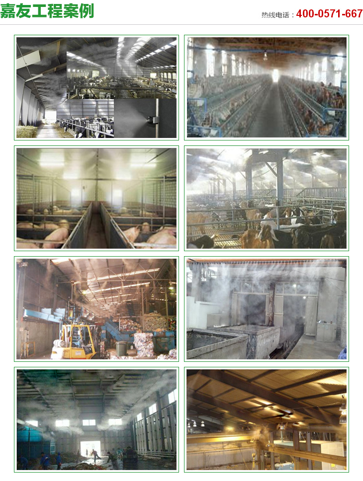 3、霧化效果好:反濺式微霧噴嘴,噴嘴孔徑精度高,霧化角度規範均勻,螺旋霧化,粒子直徑僅(jin) 為(wei) 2—6μm,在1.5m-2m左右的一個(ge) 空間距離吸熱就能由液態轉為(wei) 氣態,被空氣吸收氣化,對車間設備無影響。