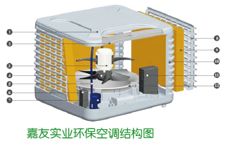 2、外框為工程塑料壓製而成,抗老化5090/6090濕簾紙,濕簾紙采用進口樂泰膠水,耐水浸泡,不易脫膠塌陷腐爛,使用壽命長,8年以上。3C認證鋁殼銅芯電機,高強度大三葉扇葉,風量大,噪音小,方形工程塑料風管